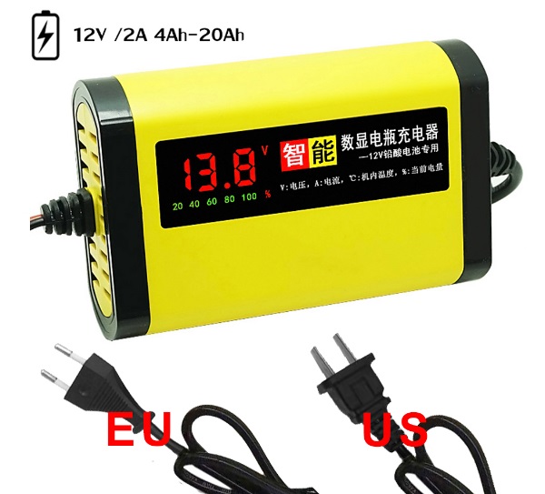 Prostownik ładowarka 2A do akumulatorów 4-20AH motocykla quada z wyświetlaczem