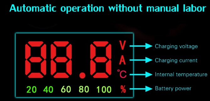Inteligentna regulacja prądu i napięcia, automatycznie zatrzymuje prąd ładowania po pełnym naładowaniu.
